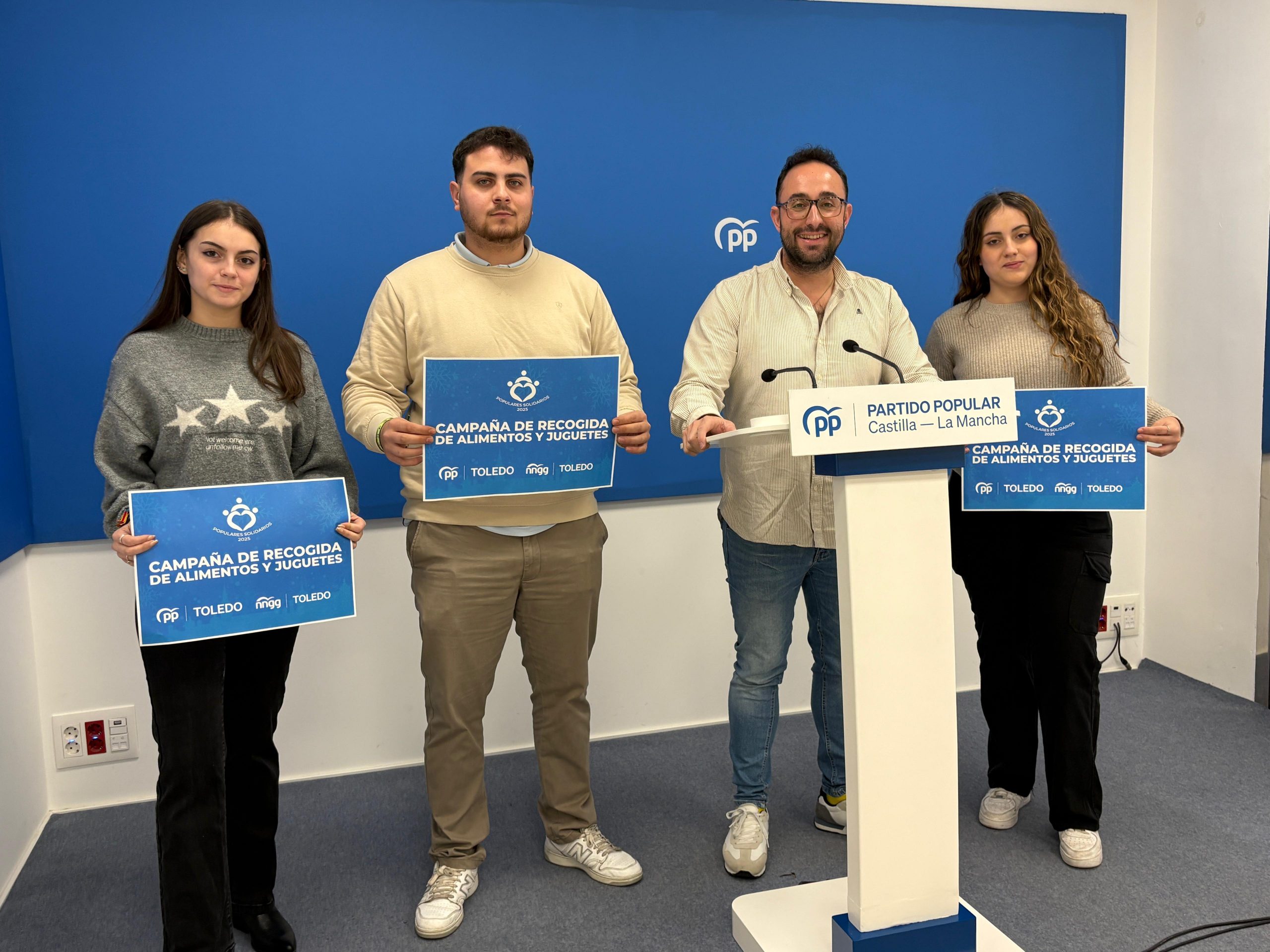 18 de diciembre de 2025.- Nuevas Generaciones de Toledo ha presentado hoy, en rueda de prensa, la XXIII edición de la campaña navideña “Populares Solidarios”, una iniciativa de recogida de alimentos y juguetes que volverá a recorrer la provincia con el objetivo de ayudar a las familias y hogares más vulnerables.